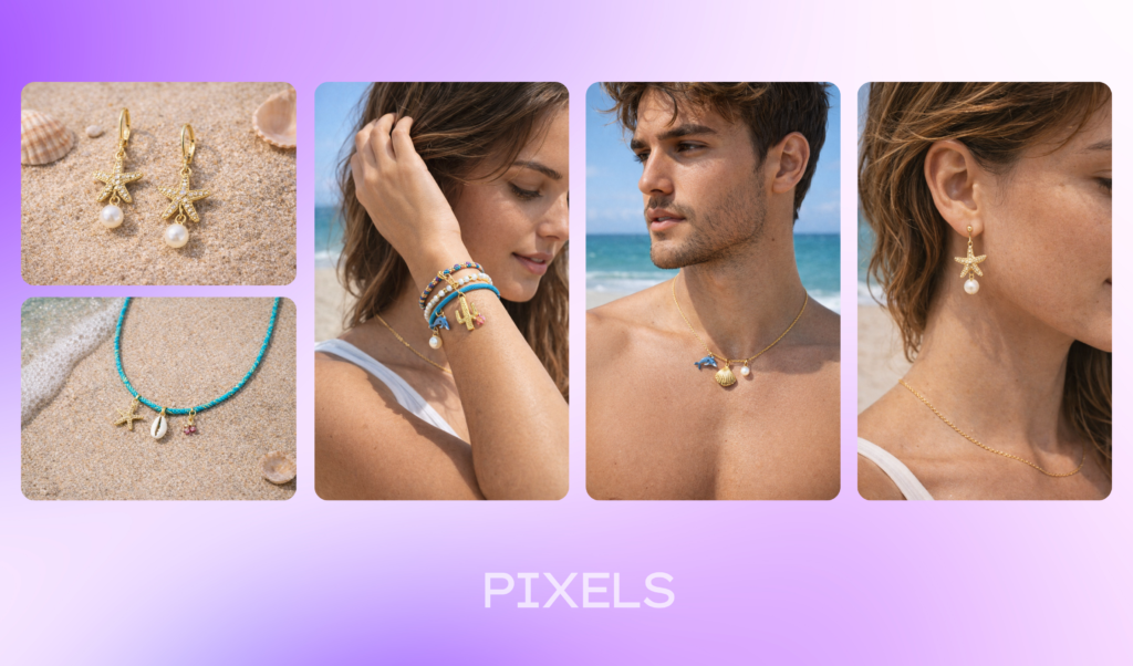 La joyería de Cielo y Mar se concibe como una extensión del entorno costero: ligera, luminosa y con un espíritu libre. La propuesta visual se basa en transmitir esa esencia a través de imágenes que no solo muestran el producto, sino que cuentan una historia.